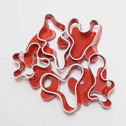Wall sculptures from the series Reflections take as their point of departure the ever - changing play of light and dark, and reflections of buildings and graffiti on London's Regents Canal. For years now I have photographed reflections on the canal, the movement of the water, the way the surface inverts and distorts images, stuff floating, or drifting just below the surface... There is rich metaphoric potential in the continuity of change that is so evident here in the solidity of the canal as a built structure and waterway through the city that carries the most ephemeral images on its watery surface.